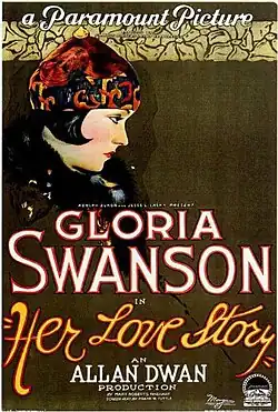 Her Love Story is a 1924 American silent romantic drama film directed by Allan Dwan and starring Gloria Swanson. It was produced by Famous Players–Lasky, distributed by Paramount Pictures, and based on the short story "Her Majesty, the Queen" by Mary Roberts Rinehart.[1][2]