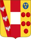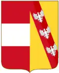 | Arms of Austria impaled with Burgundy (ancient). The personal arms of most Austrian princes from 1477 until 1740 (see here) | Personal Arms of Joseph II and Marie Antoinette showing Austria (Habsburg arms) impaled with Lorraine (Lorraine arms). | Tripartite personal arms of Leopold II and Francis II/I showing Austria (Habsburg arms), Lorraine (Lorraine arms) and Tuscany (Medici arms), and used by the House of Austria-Tuscany (see Archduke Sigismund, Grand Duke of Tuscany). | Tripartite personal arms of the "Habsburg" ruling house after 1805 showing the return to prominence of the old Habsburg arms. This was illustrate that the old dynasty continued in all its rights. It is used today by most archdukes/archduchesses. |