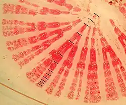 Counting of annual growth rings can be used to determine the age of a perennial herb similarly as it is done in trees using dendrochronology.[2] This way it was found that some perennial herbs live up to 50 years and more.[3][4]