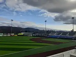 The stadium, built in 1994 with a capacity of 4,500, comprising a roughly-symmetrical two-level stand which stretched from just past first base to just past third base, and included concessions, a kids area and play areas. The entire field, excluding the pitchers mound and home plate area, was converted to AstroTurf in the spring of 2014.[20]
