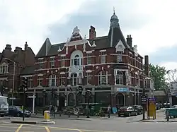 The Half Moon public house in Half Moon Lane was built in 1896 (although a tavern has existed on the site since the 17th century) and was Grade II* listed in 1998.[19] The pub was formerly a popular live music venue and hosted a boxing gym for more than 50 years.[20] The freehold of the pub belongs to the Dulwich Estate. The Commercial in Railton Road was rebuilt in 1938, and is locally listed by Lambeth Council as an inter-war pub of architectural and historic interest.[21]