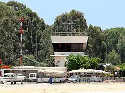 During the 1948 Arab–Israeli War, a makeshift strip located around the current airfield, was the main operating base of the Israeli Air Force's 101 "First Fighter" Squadron between June and October 1948, and the squadron moved to it after un-assembled planes were strafed on the ground on May 30. The airfield was used as it was a bit back from the front-lines, and was clandestine since it was a purpose built strip, that was constructed after the beginning of hostilities, in between the orange orchards around Herzliya, and didn't appear on published maps. During these initial operations, the squadron operated with a few planes versus almost complete Arab theater Air supremacy and the airplanes were parked dispersed between the orange trees. The squadron was moved in October to Hatzor Airbase from the strip in due to its unsuitability in rainy conditions, probable loss of clandestine status, moving front lines which made former British bases safe for use, and a shift in the balance of air superiority towards the Israelis.[1][2][3][4]