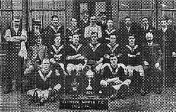 The first record of the club is of a 10–0 defeat at Fernhill in September 1896.[1] The club's first competitive action came in the Rochdale & Junior League, which the club joined in 1897,[2] finishing 3rd out of 11, just above Heywood St John's.[3] The club's first achievement of any note was reaching the Rochdale Charity Cup Final in 1898–99, going down to Hopwood in extra time;[4] nevertheless the season had been just about profitable, finishing with a positive balance of £1 4/ against income of £37 14/.[5]