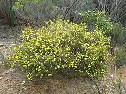 Hibbertia gracilipes is a species of flowering plant in the family Dilleniaceae and is endemic to the south-west of Western Australia. It is an erect, multi-stemmed shrub that typically grows to a height of 15โ60 cm (5.9โ23.6 in). It blooms between March and December producing yellow flowers.[2] First formally described in 1863 by George Bentham in Flora Australiensis,[3][4] the specific epithet (gracilipes) means "thin foot", referring to the peduncles.[5]