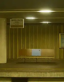 Station numbering was introduced to all Keisei Line stations on 17 July 2010; Higashi-Narita Station was assigned station number KS44.[2][3]