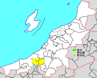 Map showing original extent of Higashikubiki District in Niigata Prefecture: