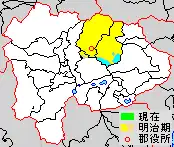 Map showing original extent of Higashiyamanashi District in Yamanashi Prefecture:
