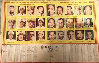 Immediately after the 1963 coup d'etat broke out on November 1, 1963 and the coup d'etat troops captured the radio station, the group of generals leading the coup announced the establishment of the Revolutionary Military Council (Vietnamese: Hội-đồng Quân-nhân Cách-mạng, Chinese: 革命軍人委員會) with 20 members. General Dương Văn Minh became president, but he was ousted in January 1964 by General Nguyễn Khánh. Phan Khắc Sửu was named head of state, but power remained with a junta of generals led by Khánh, which soon fell to infighting.