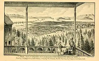 View from a veranda of a Highland Park residence looking west; 1885 illustration