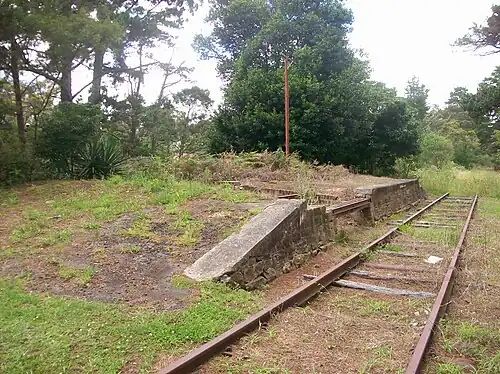 The station has been almost demolished, the platform building is gone and the platform is being restored. The loop line from Picton to Colo Vale is in transition to reopen. Upgrades are in progress.