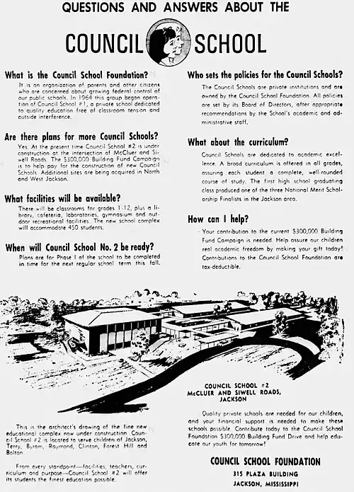 6. ^ Luckett, Robert. "From Council Schools to Today's Fight for Public Ed". www.jacksonfreepress.com. Retrieved January 29, 2020.
