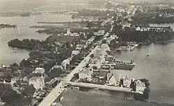 View of Hillegersberg's Straatweg in the early 1920s. The Bergse-plassen lakes lie on either side of the road.