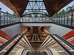 Hills Showground railway station is an underground Sydney Metro station on Doran Drive, in the suburb of Castle Hill, New South Wales, Australia. The station, located near the Castle Hill Showground, serves the Metro North West & Bankstown Line and was built as part of the Sydney Metro Northwest project. The station is planned to eventually serve trains to the Sydney central business district and Bankstown as part of the government's 20-year Sydney's Rail Future strategy.[5][6][7] The station opened 26 May 2019. It is currently the least used station on the Sydney Metro.[4]