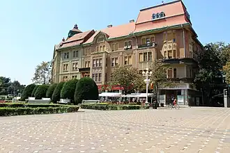 The Hilt-Vogel Palace (Romanian: Palatul Hilt-Vogel) is a historic building in Victory Square in Timișoara, Romania. It was built between 1911 and 1913, according to the plans of Hungarian architect László Székely.[1] The building is attached to the Széchényi Palace, designed by the same architect.[2] The architecture of the building corresponds to the Art Nouveau style, the szecesszió current,[3] and is made of brick, reinforced concrete, iron and tin and copper elements in the case of the parapets of the balconies.[4]