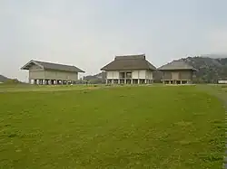 In the late Nara period, after the establishment of a centralized government under the Ritsuryō system, local rule over the provinces was standardized under a kokufu (provincial capital), and each province was divided into smaller administrative districts, known as (郡, gun, kōri), composed of 2–20 townships in 715 AD.[2] Each of the units had an administrative complex built on a semi-standardized layout based on contemporary Chinese design.
