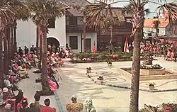The Hispanic Garden Committee sought to have the Hispanic Garden completed by the city's 400th anniversary on September 8, 1965.[8] Though unfinished, the garden was dedicated on September 5, 1965, as part of the celebrations. The project was eventually completed two years later and was rededicated on May 2, 1967. Attendees included Senator Spessard Holland, Senator George Smathers, Secretary of the Interior Stewart Udall, Ambassador Alfonso Merry del Val, Director-General of the Spanish Ministry of Foreign Affairs Ángel Sagaz Zubelzu, and Governor Haydon Burns.[9] At that time, the name was changed from Hispanic Garden to Hispanic Plaza.[10][11] Archbishop Joseph Hurley and St. Augustine Mayor John D. Bailey attended the ceremony.[12]