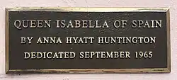 Sculptor Anna Hyatt Huntington created and donated a bronze sculpture of Queen Isabella.[7]