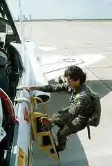 Then Lieutenant Custodio climbing down from the cockpit of a T-38
