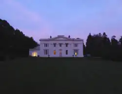 The estate of Bydown, within the parish of Swimbridge, was in ancient times owned by the Mayne and Chichester families.[21] The surviving Bydown House is a grade II* listed[22] country house built by the Nott family in 1798 as the surviving datestone states,[23] or between 1820–30 as Pevsner suggests.[24] It was described by Pevsner as "a trim neo-Grecian mansion in a small park with two immaculate white stucco fronts".[25] Between the lower storey windows is a small inscribed tablet inscribed "1759, J Nott", with the arms of Nott, reset on the new house.[26] It remained in the ownership of the Nott family until about 1925.[27]
