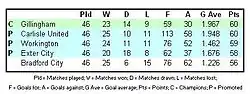 - ^ The official Football League website Archived 10 February 2007 at the Wayback Machine lists this achievement in second place on the overall list of teams who have conceded the fewest goals in a season, behind Liverpool, who conceded 16 in the 1978–79 season, however, as evidenced by the final 1978–79 First Division table Archived 1 October 2007 at the Wayback Machine, Liverpool played only 42 matches, giving Gillingham the record for a 46-match season.