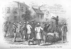 Acts of Civil War-related violence occurred in Knoxville for years after the war. On September 4, 1865, Confederate soldier Abner Baker was lynched in Knoxville after killing a Union soldier who had killed his father.[31]: 217–9 On July 10, 1868, Union major E.C. Camp shot and killed Confederate colonel Henry Ashby on Main Street in front of the courthouse over a Civil War grievance.[40] On June 13, 1870, Joseph Mabry shot pro-Union attorney John Baxter in front of the Lamar House, capping a feud that had been building since the war.[39] The following year, David Nelson, the son of pro-Union congressman T.A.R. Nelson, shot and killed Confederate general James Holt Clanton on Gay Street in front of the Lamar House.[41]