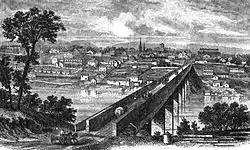 As early as the 1820s, Knoxville's business leaders viewed railroads— then a relatively new form of transportation— as a solution to the city's economic isolation. Led by banker J. G. M. Ramsey (1797–1884), Knoxville business leaders joined calls to build a rail line connecting the city to Cincinnati, Ohio to the north and Charleston, South Carolina to the southeast, which led to the chartering of the Louisville, Cincinnati and Charleston Railroad (LC&C) in 1836.[25] The Hiwassee Railroad, chartered two years later, was to connect this line with a rail line in Dalton, Georgia.[25]