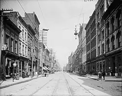 By the 1880s, Knoxville had a murder rate that was higher than Los Angeles's murder rate in the 1990s.[56]: 102 Journalist Jack Neely points out that "saloons, whorehouses, cocaine parlors, gambling dens, and poolrooms" lined Central Street from the railroad tracks to the river.[61] High-profile shootouts were not uncommon, the most well-known being the Mabry-O'Connor shootout on Gay Street, which left banker Thomas O'Connor, businessman Joseph Mabry, and Mabry's son, dead in 1882.[62] In 1901, Kid Curry, a member of Butch Cassidy's Wild Bunch, shot and killed two police officers at Ike Jones's Bar on Central.[63] The Kid Curry shooting helped fuel calls for citywide prohibition, which was enacted in 1907.[63]