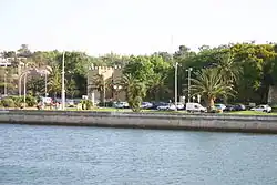 On 12 October 1897, King D. Carlos arrived in Lagos by boat, accompanied by his wife Amélia de Orleães.[106] The ceremony began with the arrival of the escaleres bringing the royal couple and the other guests, which passed through the middle of two wings formed by hundreds of boats decorated for the purpose, and where a large crowd of people launched firecrackers and greeted the kings.[106] The city of Lagos was also decorated for this visit, with ornaments in every street from Constituição Square to Porta de Portugal Street, while quilts hung from the windows.[106] The royal couple disembarked at Constituição Square and proceeded to the Santa Maria Church, then proceeded to the Paços do Concelho, where a speech was heard by the mayor and a meal was taken.[127] During the ceremony, the royal couple laid the first stone for the construction of the wall, although the work never got underway.[128] In 1902, the government ordered repairs to be made to the walls between Ribeira and Porta de Portugal, after many complaints by the municipality.[129]