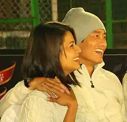 Bhaichung Bhutia, with his wife, at Mohun Bagan Ground in 2009.
