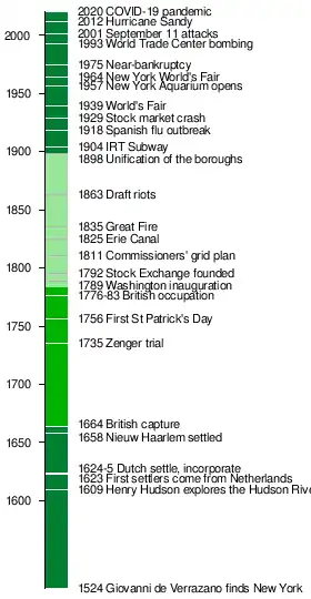 - Columbia University Libraries. "New York City History". Research Guides. New York: Columbia University. Archived from the original on February 23, 2014. Retrieved February 6, 2014.