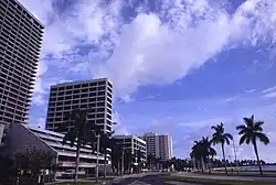 Flagler Drive in West Palm Beach looking north in 1986. The condominiums formerly known as Trump Plaza – purchased that year by Donald Trump – are partially visible on the left
