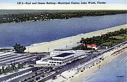 A postcard of the Lake Worth casino and municipal beach (c. 1953)