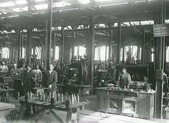 After the economic crisis due to World War I, businesses continued to consolidate: among others, Magneti Marelli's Plant B (accumulators) was established in 1927.[41] With the development of industry, Sesto San Giovanni was hit by a strong wave of migration and became a seething melting pot: professionalism, technical knowledge, cultures, ideologies and policies that were different from each other, yet all converging on labor issues, began to confront and enrich each other.[42] In 1919 the Chamber of Labor was opened in Sesto San Giovanni and the first riots and strikes began, aimed at improving wages, working conditions, and in 1920 the first occupation of the factories by blue-collar workers was recorded,[43] in what is remembered as the Two Red Years. From 1921 a new and different migration began: many workers from central Italy and Emilia-Romagna forced to emigrate because of harassment by fascist action squads landed in factories where there was still room for political action.