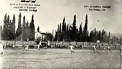 Football was played between English soldiers and sailors in Ottoman Empire in the late 19th century and it was quickly spread to the minorities, Greeks, Armenians, and the Levantines. The first teams in the Ottoman Empire consisted of Greek, Armenian and English players.[2] One of the first matches recorded in the Empire was in 1889 between Levantine teams: Bournabat Football Club played against Constantinople FC, according to historian Mehmet Yüce.