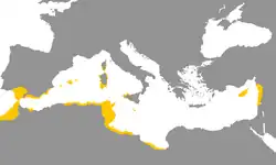 Between 3000 and 4000 years ago, Proto-Bantu, spoken in parts of Central and West Africa in the vicinity of Cameroon split off from other Bantoid languages with the start of the Bantu expansion.[8] Well documented languages are primarily preserved in—or from—North Africa, where complex states formed and interacted with other parts of the Mediterranean world. Punic, a variant of Phoenician became a dominant language for perhaps two centuries from the 8th century to 6th century in the Carthaginian Empire.[9] The language maintained lengthy contacts with the rest of the Phoenician sprachraum until the defeat of the empire by Rome in 146 BC, but began to adopt more words and names from neighboring Berber languages over time. The Roman invaders showed appreciation for monumental Carthaginian inscriptions, translating them and giving them as gifts for Berber libraries. A form of the language, referred to by modern scholars as Latino-Punic continued for centuries afterward, with the same word structures and phonology but writing conducted in Latin script.[10]