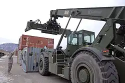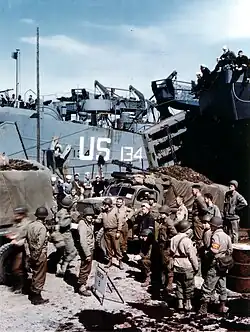 The development of amphibious craft allowed the Allies to land in Normandy without having to quickly seize a heavily defended port.[153][154] After their victory in the Battle of Normandy, the advance came to a halt in September 1944.[155] This was not a result of inadequate supplies or port capacity – there were still some 600,000 long tons (610,000 t) of supplies stockpiled in the Normandy lodgment area in November – nor solely by a shortage of fuel. Rather, the problem was the inability to deliver fuel and supplies to the armies.[156] Railways could not be repaired and pipelines could not be constructed quickly enough.[157] Motor transport was used as a stopgap,[158] but insufficient numbers of heavy trucks compelled the Army to use the smaller general purpose 2½-ton 6×6 trucks for long hauls, for which they were unsuited.[159] The Red Ball Express was a success, but at a cost: overloading, careless driving, lack of proper vehicle maintenance, and wear and tear took their toll on the truck fleet.[160][161] In the long run it was the railways that carried most of the tonnage.[162]