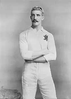 The following year England played their first game against the Irish at the Oval, winning seven nil; the match was Ireland's first Test.[8][9] Another match between England and Ireland was held in December, with England winning again.[9] Games were played against Scotland and Ireland in 1876 and 1877 respectively, and although holding the opponents scoreless, the margin of scoring was low.[10] A second game against Scotland that year resulted in England's first loss since their first game.[10]