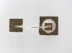 In September 1961, while working at Texas Instruments in Dallas, Texas, James R. Biard and Gary Pittman discovered near-infrared (900 nm) light emission from a tunnel diode they had constructed on a GaAs substrate.[19] By October 1961, they had demonstrated efficient light emission and signal coupling between a GaAs p-n junction light emitter and an electrically isolated semiconductor photodetector.[20] On August 8, 1962, Biard and Pittman filed a patent titled "Semiconductor Radiant Diode" based on their findings, which described a zinc-diffused p–n junction LED with a spaced cathode contact to allow for efficient emission of infrared light under forward bias.