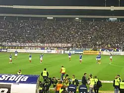 The 2008 UEFA European Football Championship qualifying campaign began with a 1–0 victory over Azerbaijan by Nikola Žigić's goal in the 72nd minute on 6 September 2006. Four days later, Serbia drew with Poland 1–1. Serbia made a two victories in October: 1–0 over Belgium and 3–0 over Armenia. In 6 matches, Serbia stayed undefeated in 2006 (4 victories, 2 draws). In the first qualifying match in 2007, Serbia unexpectedly lost 1–2 from Kazakhstan in Almaty, and four days later (28 March 2007) made a draw in front of 52,000 fans at Rajko Mitić Stadium against Portugal. On 2 June 2007, Serbia made a 2–0 victory over Finland in Helsinki. In August, he lost from Belgium 2–3 away, Zdravko Kuzmanović scored (his first) two goals. After a three draws, Serbia demolished Azerbaijan with 6–1 in Baku. On 21 November 2007, Serbia draw 2–2 at home with Poland in the front of 3,000 fans. Three days later, with a low attendance (less than 1,000) at Partizan Stadium, Serbia defeated Kazakhstan by own goal in the 79th minute in the last match of this qualifying cycle. Serbia finished third, three points behind runners-up Portugal and Group A winners Poland. Serbia's first ever foreign coach Javier Clemente was sacked after the failure.