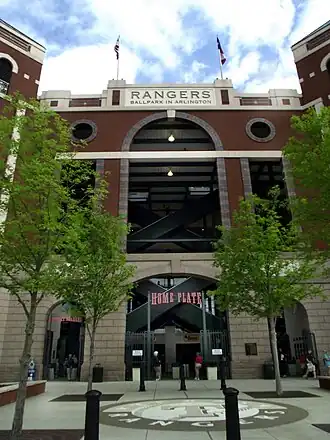 - ^ Sullivan, T.R. (March 19, 2007). "It's now Rangers Ballpark in Arlington". MLB.com. Archived from the original on February 2, 2016.