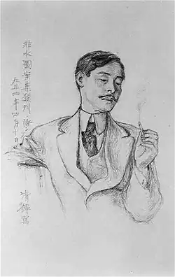 At first, he was aiming to become a Japanese-style painter and he studied under Matsuura Ganki, a Japanese style painter of the Shijō school. He went to Tokyo in 1897. Afterward, he studied under Kawabata Gyokusho. He entered the Japanese-style painting department of Tokyo School of Art. He learned the western-style painting and the European-style design from Kuroda Seiki while he was attending the Tokyo School of Art.