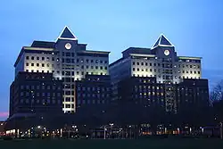 In 1975, the western part of the Keuffel and Esser Manufacturing Complex (known as "Clock Towers") was converted into residential apartments, after having been an architectural, engineering and drafting facility from 1907 to 1968;[68] the eastern part portion became residential apartments in 1984 (now called the Grand Adams).[68]