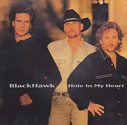 "Hole in My Heart" is a song recorded by American country music group Blackhawk. It was released in June 1997 as first single from the album Love & Gravity. The song reached #31 on the Billboard Hot Country Singles & Tracks chart.[1] The song was written by group members Van Stephenson and Dave Robbins, along with Desmond Child.