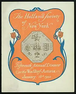 Program for the Holland Society's 15th Annual Dinner, January 18, 1900, Waldorf-Astoria Hotel, New York City.
