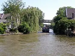 The Hollandse or Hollandsche IJssel (pronounced [ˌɦɔlɑntsə ˈʔɛisəl]; "Holland IJssel", as opposed to the 'regular' or Gelderland IJssel) is a branch of the Rhine delta that flows westward from Nieuwegein on river Lek through IJsselstein, Gouda and Capelle aan den IJssel to Krimpen aan den IJssel, where it ends in the Nieuwe Maas. Another branch called Enge IJssel ("Narrow IJssel") flows southwest from Nieuwegein. The name IJssel is thought to derive from the Germanic i sala, meaning "dark water". Originally, the Hollandse IJssel forked off from river Lek at Nieuwegein, but the connection was cut off with the Hollandse IJssel nowadays only draining the surrounding pastures.