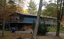 Principally designed by Charles M. Goodman and developed by Robert C. Davenport in the 1940s, it was one of the Washington, D.C. area's first post-war modernist architecture developments, combined with natural landscape designs between 1949 and 1971. Davenport purchased the original 225 acres (91 ha) of hilly, undeveloped land for $550/acre (present value:$8,869/acre). As home sales and national acclaim grew, he then acquired another 101 acres (41 ha) in 1956, and constructed more homes until the "New Hollin Hills" was completed in 1971. In all, roughly 450 houses with contemporary construction techniques and landscape plans were established in northern Virginia, offsetting the area's more common Colonial Revival homes.[4] Today, the neighborhood is known primarily for its mid-century modern architecture homes, each is uniquely oriented on its lot to maximize its privacy and landscape view, with sight lines intentionally chosen to enhance the common space shared by each structure. These design tenets have remained very cohesive because of a long-standing design review committee that advises on building or modification of existing houses, and starting in 2022, its designation as the Hollin Hills Historic Overlay District (HOD), which requires modifications and additions to be reviewed by Fairfax County Architectural Review Board.[3][5]