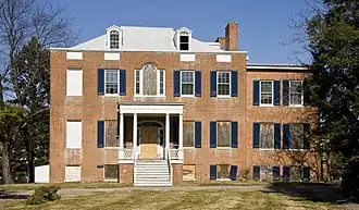 Holly Hall is a historic home located at Elkton, Cecil County, Maryland, United States. Built by James Sewall ca. 1810–20, it is a 2+1⁄2-story, Federal-style brick mansion built about 1810. The one-story brick north wing was added as a chapel in the 20th century. Also on the property is a late-19th-century two-story wood tenant house and two concrete block buildings. A few holly trees remain of the many which gave this house its name. Its parapets are unique in Maryland.[2]