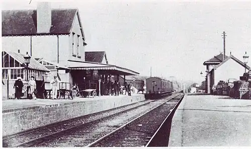 The station was opened along with the single track line on 20 January 1879 and the LSWR began operating a smart horse-bus service to Bude in connection with the trains.[4] The station was approached across Holsworthy Viaduct, a structure consisting of nine 50 ft spans and the first of its kind to be built entirely out of concrete.
