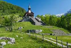 The memorial church dedicated to the Holy Spirit on Javorca in the Tolminka Valley has a sign of the European Heritage Label since the year 2018, joining the 38 similar monuments in Europe.[4] In Slovenia only Franja Partisan Hospital has also the sign of the European Heritage Label.[5] The highest European recognition for cultural heritage has church received because of the values which it represents. It is dedicated to the fallen soldiers in World War I independent from their origin or culture.[6] It represents values such as: peace, human dignity, respect for different cultures, religions and nationalities.