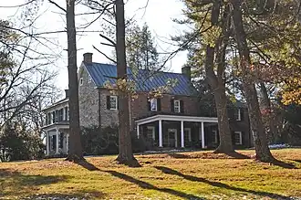 Home Farm is a historic home located near Leesburg, Loudoun County, Virginia. The original log section of the house was built about 1757, with a stone addition built about 1810, a frame addition built about 1830, and a frame kitchen addition built about 1930. It is an L-shaped, two-story, single-pile vernacular house clad in wood siding, random rubble fieldstone, and brick veneer laid. The interior exhibits stylistic influences of the Federal style. Also on the property are a contributing early-20th century henhouse, the stone foundation of a spring house, and a dry-laid fieldstone wall.[3]